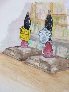 She nods, sits on the bar stool next to Geoffrey, and takes a long drink from the pint of ice-cold cider that Keith places in front of her. She puts the tankard back on the bar. ‘I needed that.’